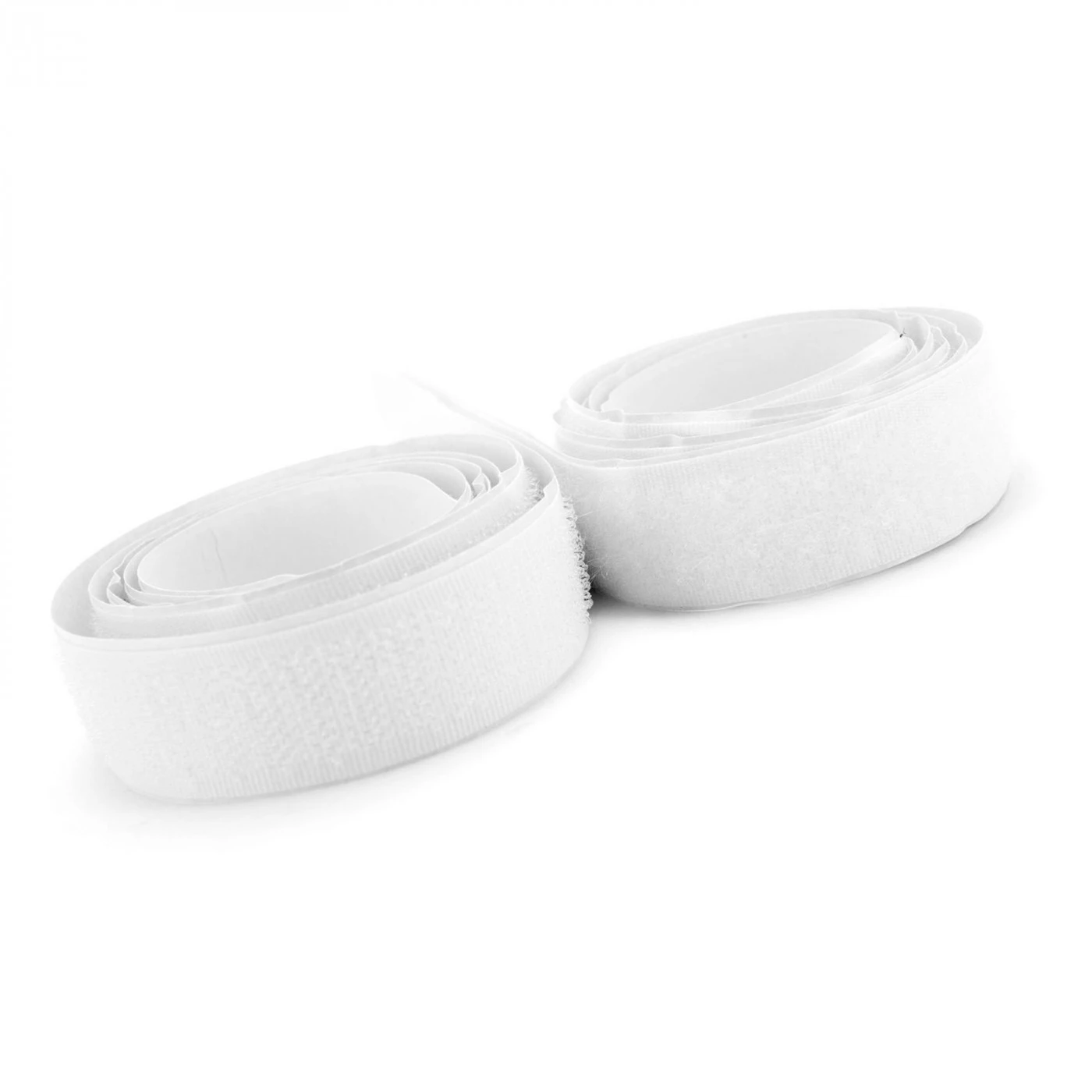 This velcro (hook and loop) tape set consists of 20 rolls of 1 meter tape, 10 rolls with the hook side and 10 rolls with the loop side. The rolls are self-adhesive.