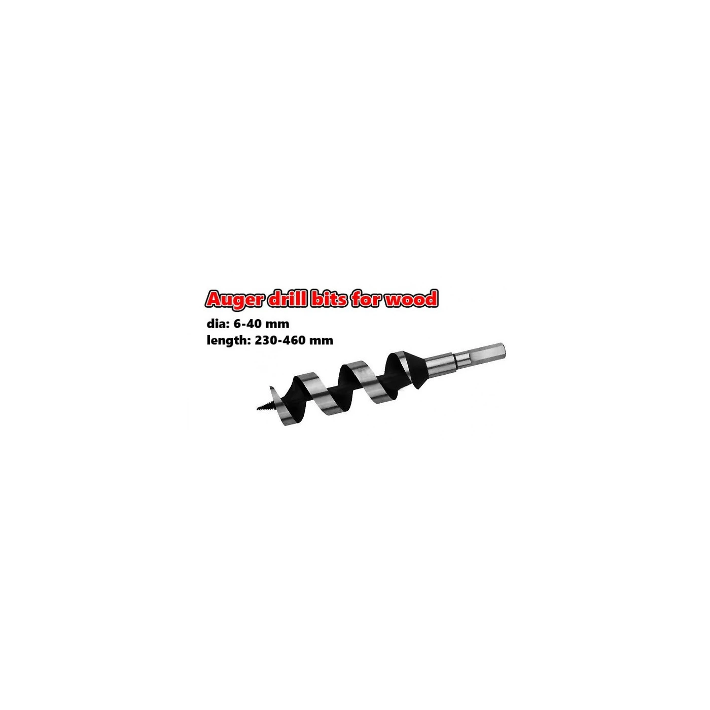 Auger drill bits for wood with a hexagonal shaft, to be used in drilling machines.