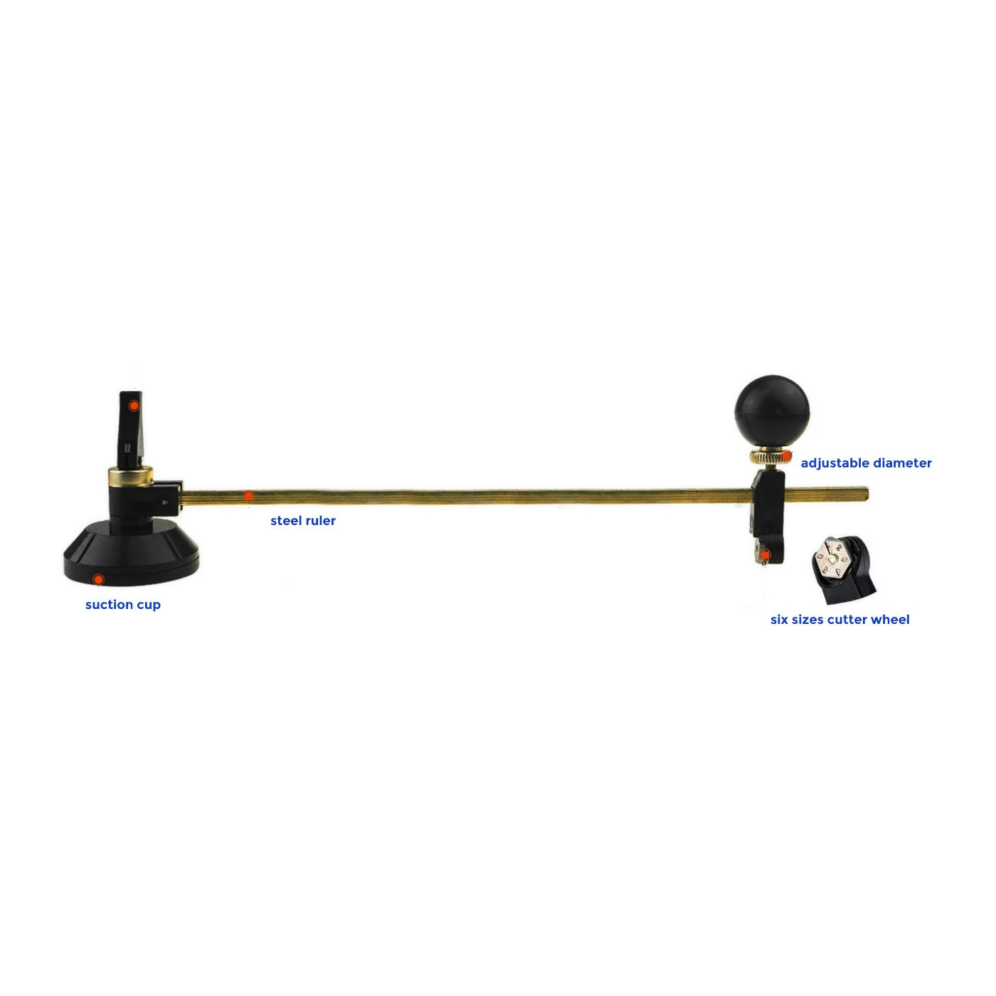 Circle glass cutter (device for cutting glass in a circular form), maximum possible diameter of circle: 80 cm