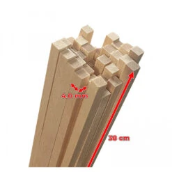 Set Of 200 Wooden Sticks (square, 4.0×4.0 Mm, 38 Cm Length, Birch Wood)
