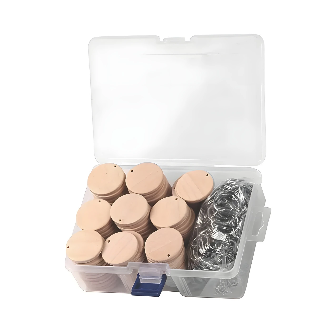 Perfect for both adults and children, this DIY keychain kit provides a fun, hands-on crafting experience. Kids can enjoy decorating the smooth, unfinished wood surfaces with paints, markers, or stickers, making it ideal for group activities, birthday parties, or family bonding time. Plus, it all comes organized in a convenient storage box, keeping your supplies neat and accessible for future projects. Let your creativity shine with this simple yet versatile keychain-making kit!