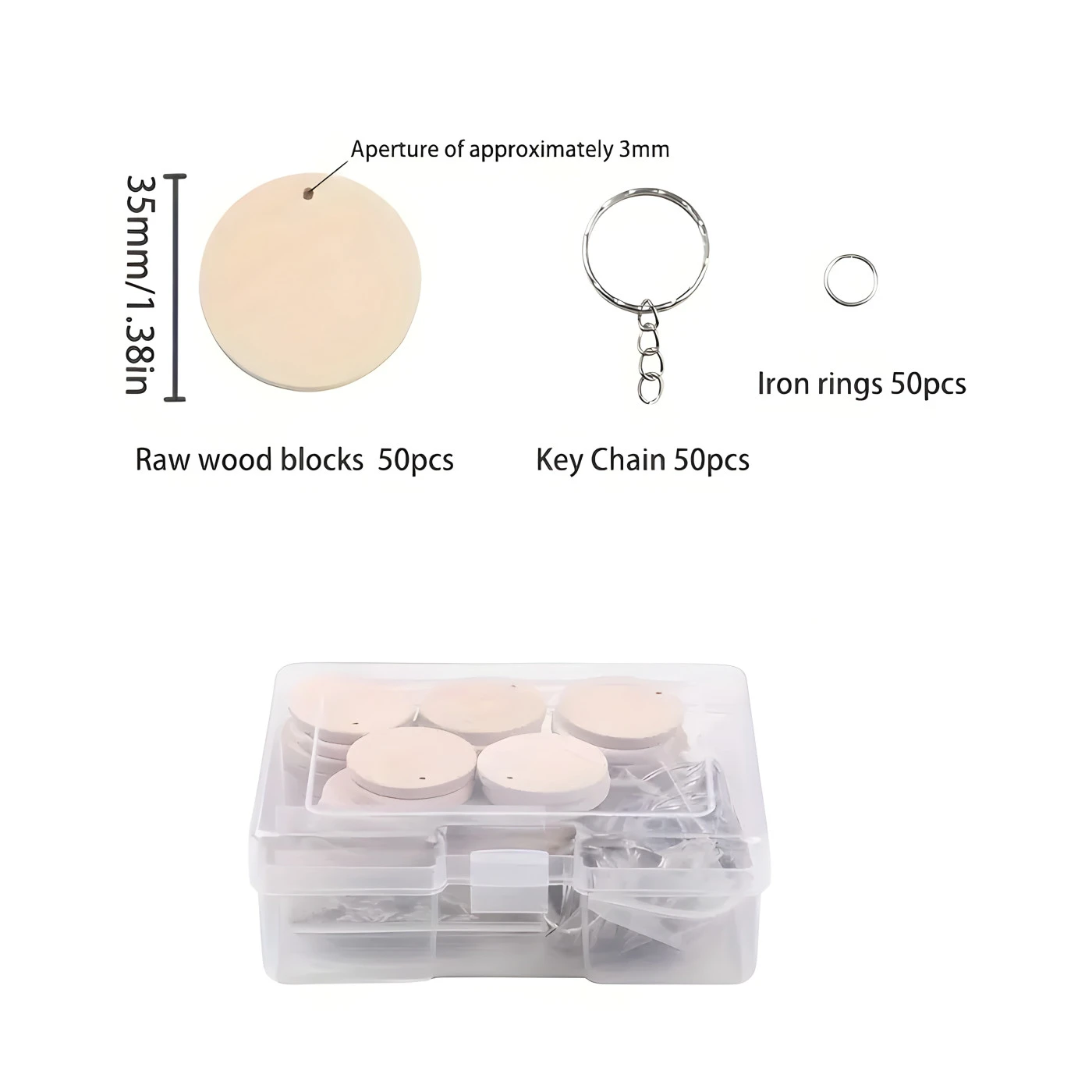Create your own personalized keychains with this DIY Keychain Kit! This set includes 50 raw wood discs, each pre-drilled with a 3mm hole, and perfectly sized at 35mm (1.38 inches) for easy handling and decoration. With 50 durable iron rings and 50 keychain chains, you’ll have everything you need to make unique and creative keychains for yourself, friends, or family.