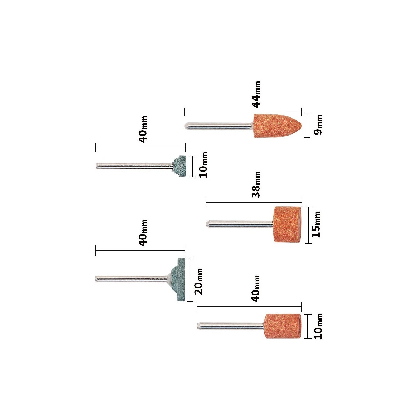 Set of grinding parts for dremel, proxxon and other machines (with 3.175 mm shaft option)