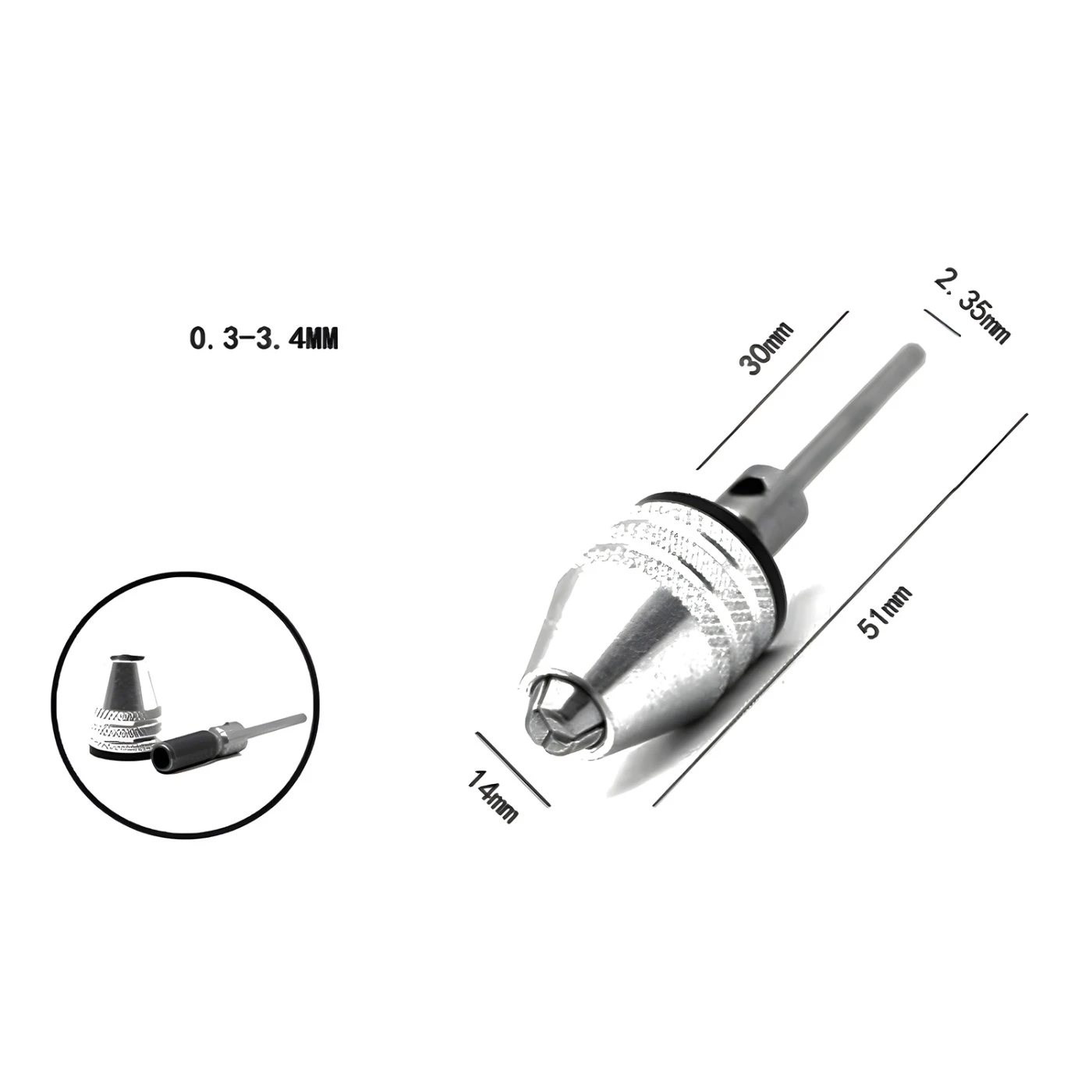 Quick-release chuck for drill bits (for drills with 0.30 – 3.40 mm shank)
