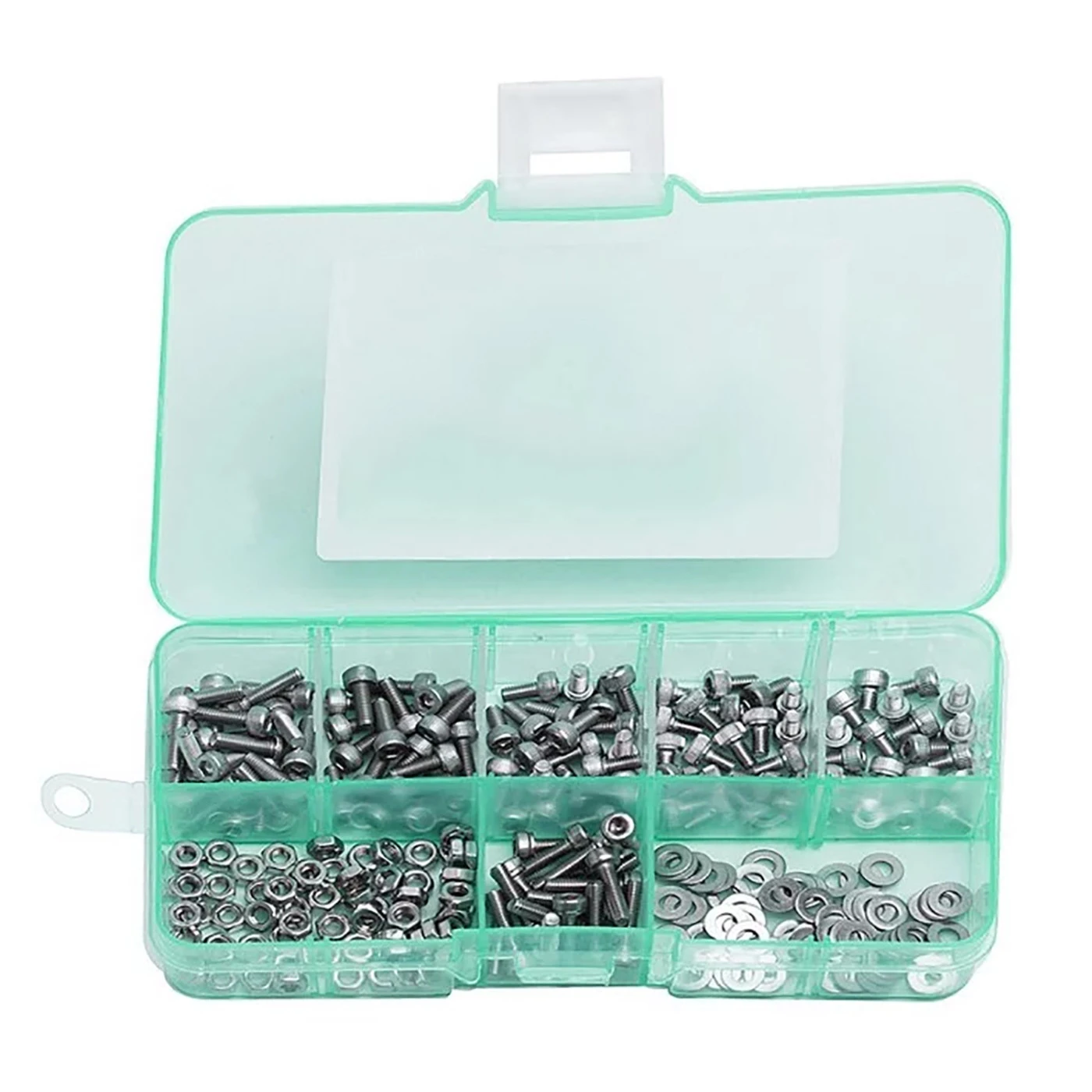 This set of in total about 250 different bolts, nuts and washers for wood and metal is a welcome addition for every handyman. Supplied in a handy PVC box with subdivision.