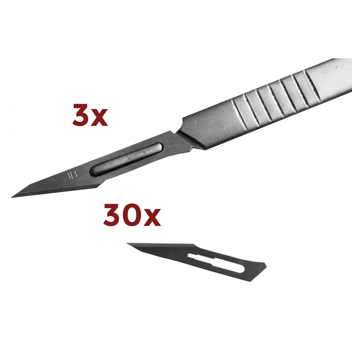 Set of 30 razor sharp blades with 3 handles included.