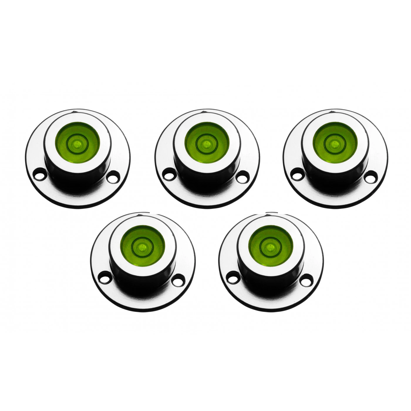 Mini round bubble level tool in metal shell (has 3 screw holes).