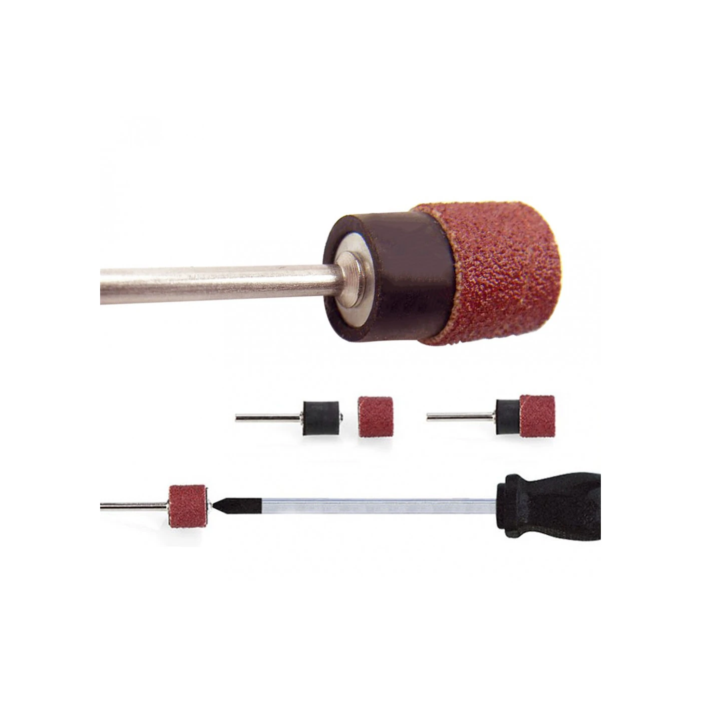 This set with 60 sanding bands can be used for sanding wood, plastic and metals. Suitable for cleaning, removing rust, grinding, dusting, deburring, polishing and stripping metal surfaces. The set comes with 2 mandrels and can be used with any drill and multitool such as those of dremel and proxxon and similar machines.