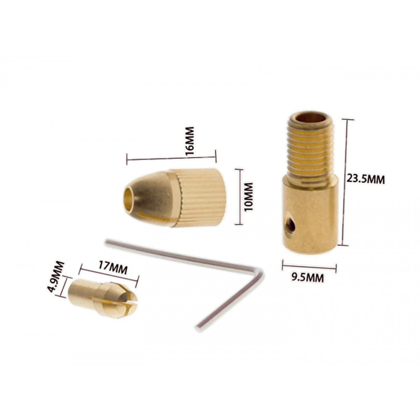 Quick-release chuck for (mini) drills and self-assembly systems. With 2.35 mm holder on the back to, for example, connect a motor to a collet.